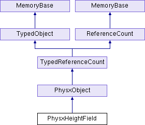 Height fields are referenced by shape instances of type PhysxHeightFieldShape.